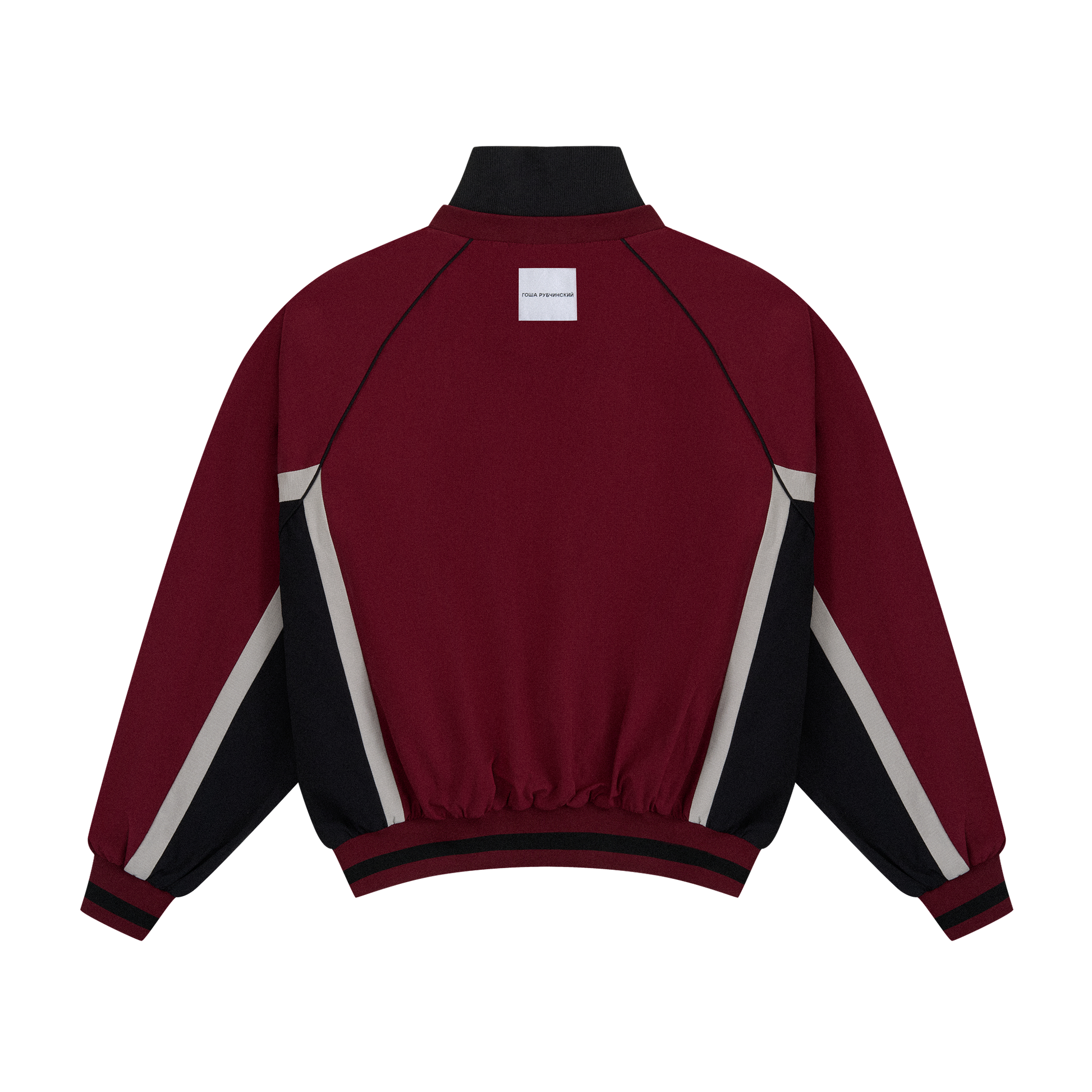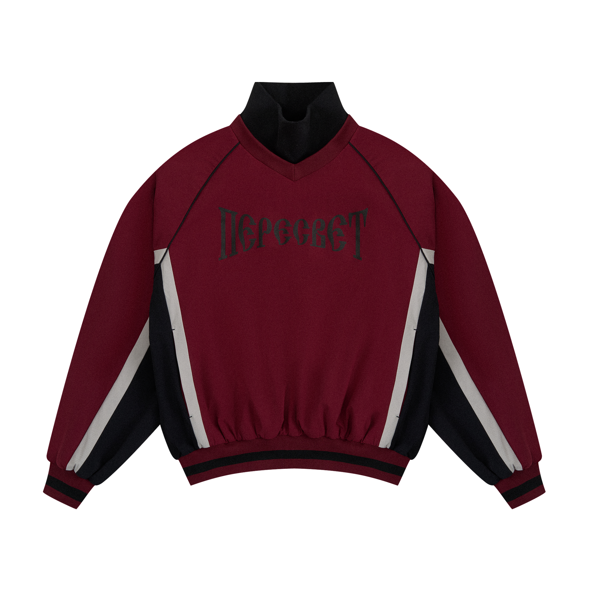 OVERSIZED NYLON SWEATSHIRT WITH HIGH-NECK, CONTRAST SIDE PANELS AND CHEST PRINT PERESVET. PERESVET REFERS TO OVEREXPOSURE — THE MOMENT WHEN LIGHT OVERTAKES THE IMAGE